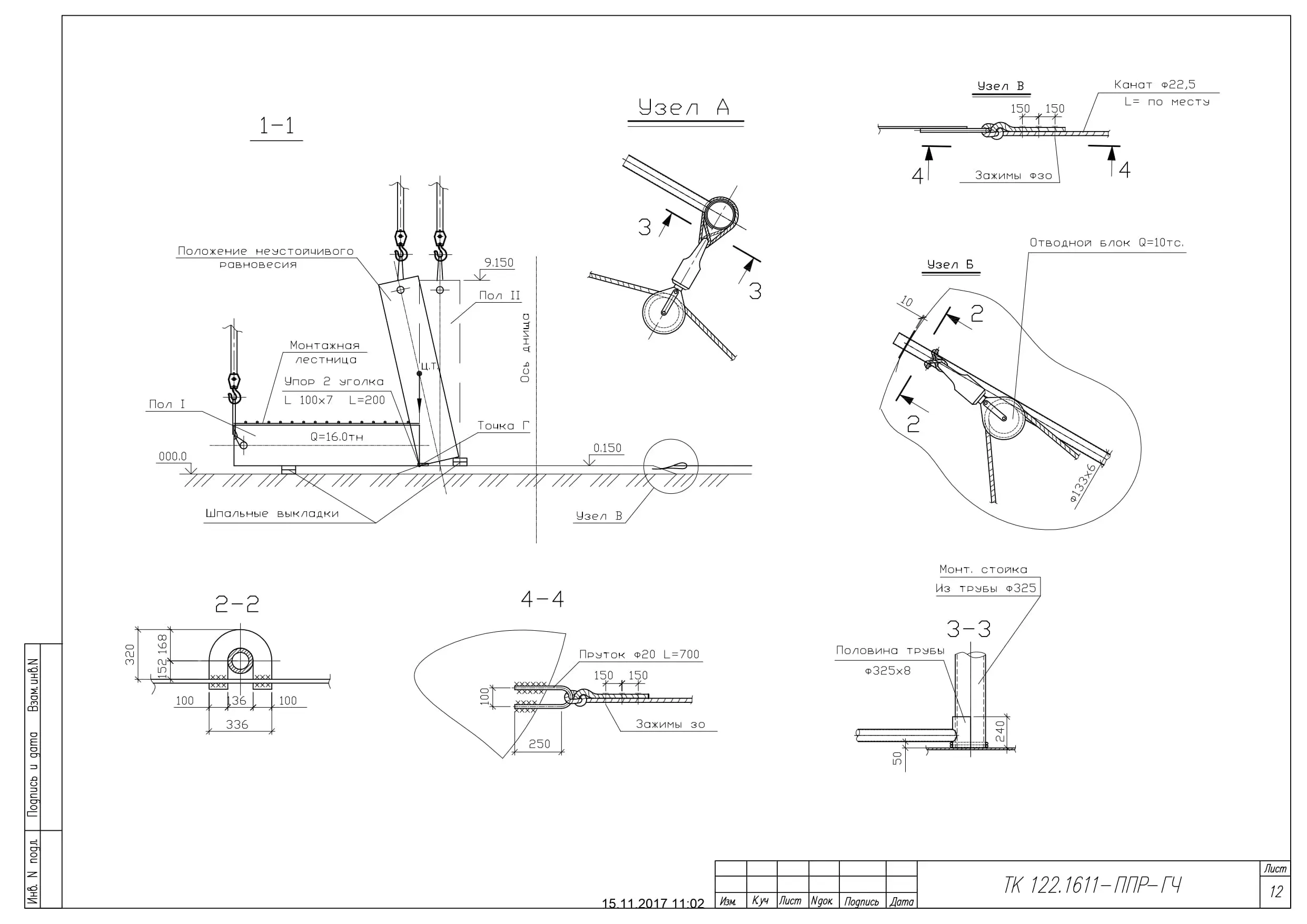 Исходные данные для ППР на такелажные работы