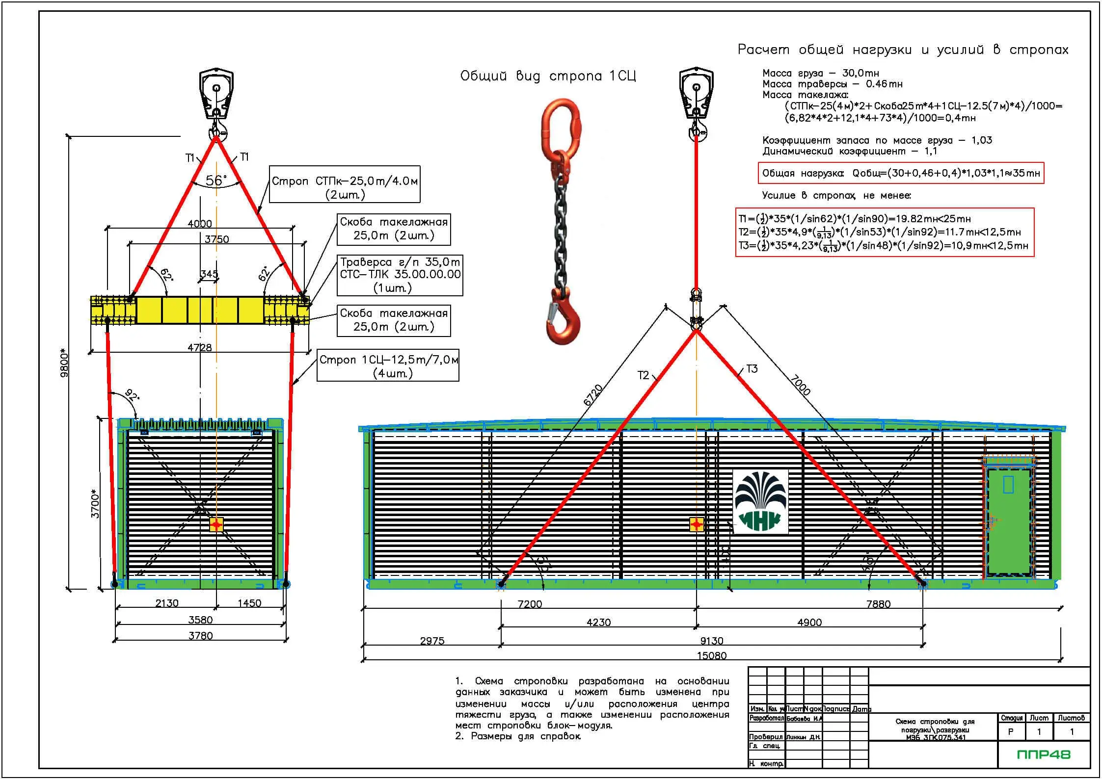 По необходимости специалисты компании выполняют расчеты усилий в стропах, траверсах, захватах и других приспособлениях, возникающих при различных этапах работ. Такой подход гарантирует правильный выбор средств и безопасность всего процесса. -