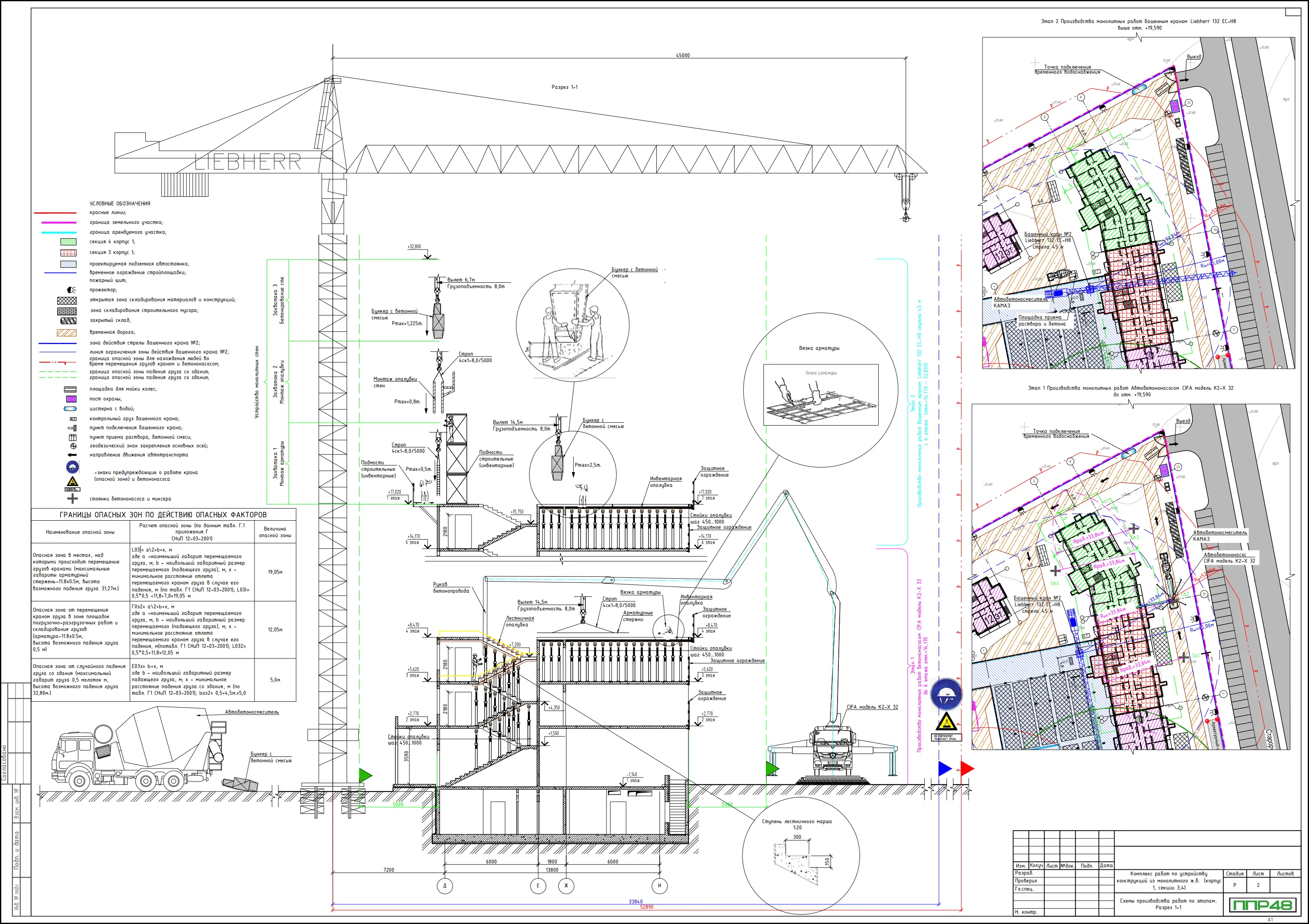 Этапы подготовки и проведения работ на стройплощадке включают подготовительный период, разработку плана работ и полный набор исполнительной документации. В составе ППР на подготовительный период учитываются новости отрасли, требования к защите окружающей среды и охране труда, а также спецификаций по монолитным и монолитно-монтажным работам. Для безопасного проведения работ на высоте и внутри помещений предусмотрены регламенты по применению слаботочных систем, а также по размещению оборудования и материалов на участке.