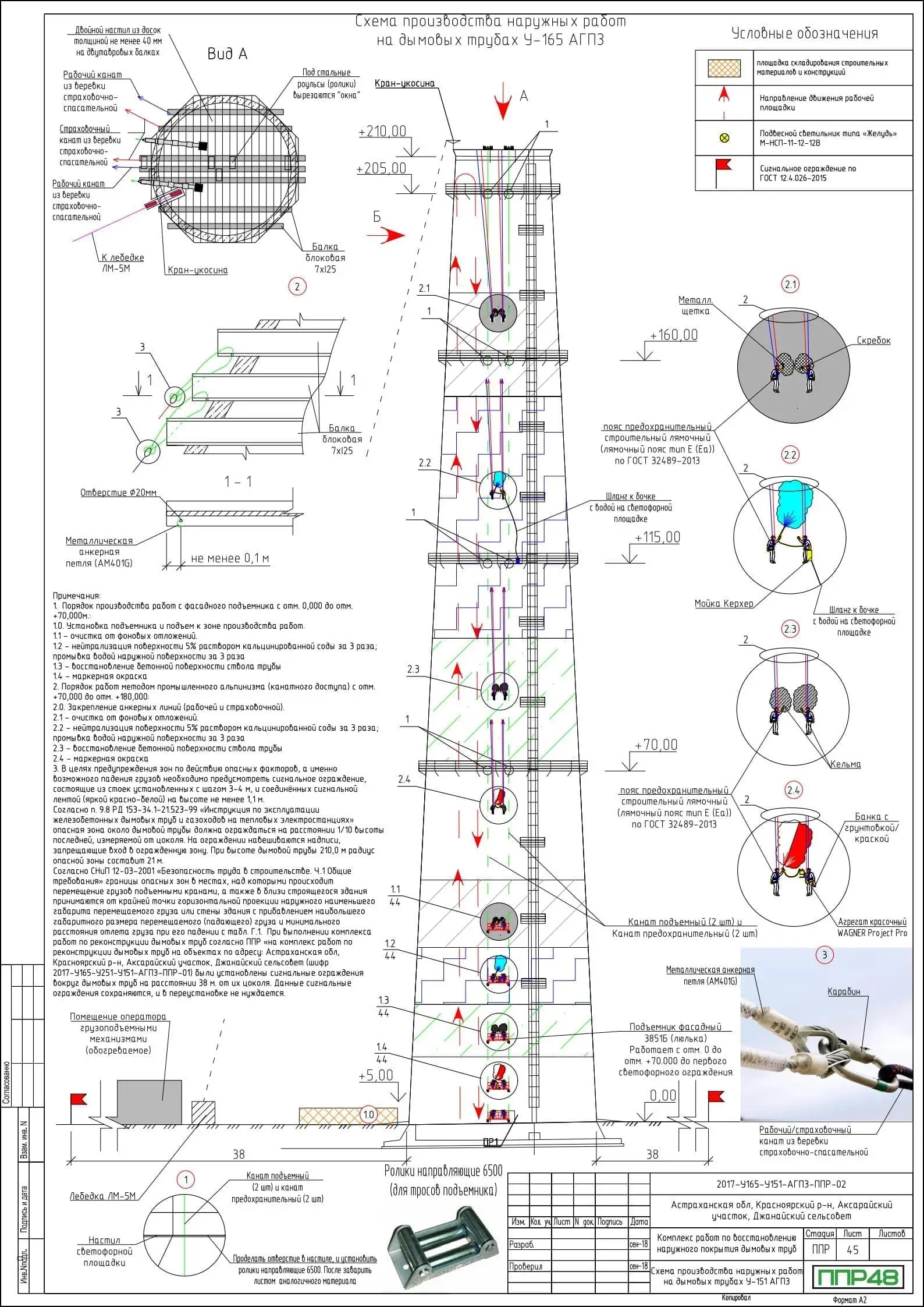 Кроме стандартных разделов документа, в состав ППР на монтаж металлической дымовой трубы необходимо внести:
