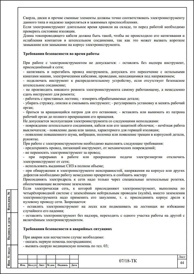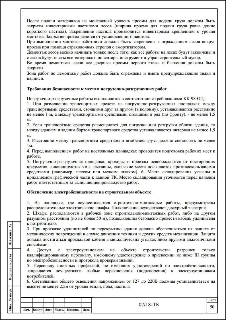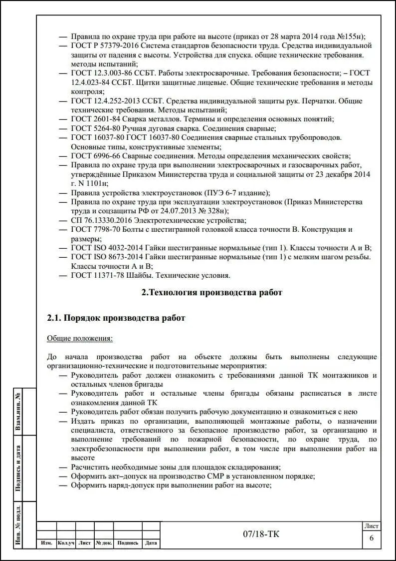 Порядок разработки технологических карт безопасного производства работ