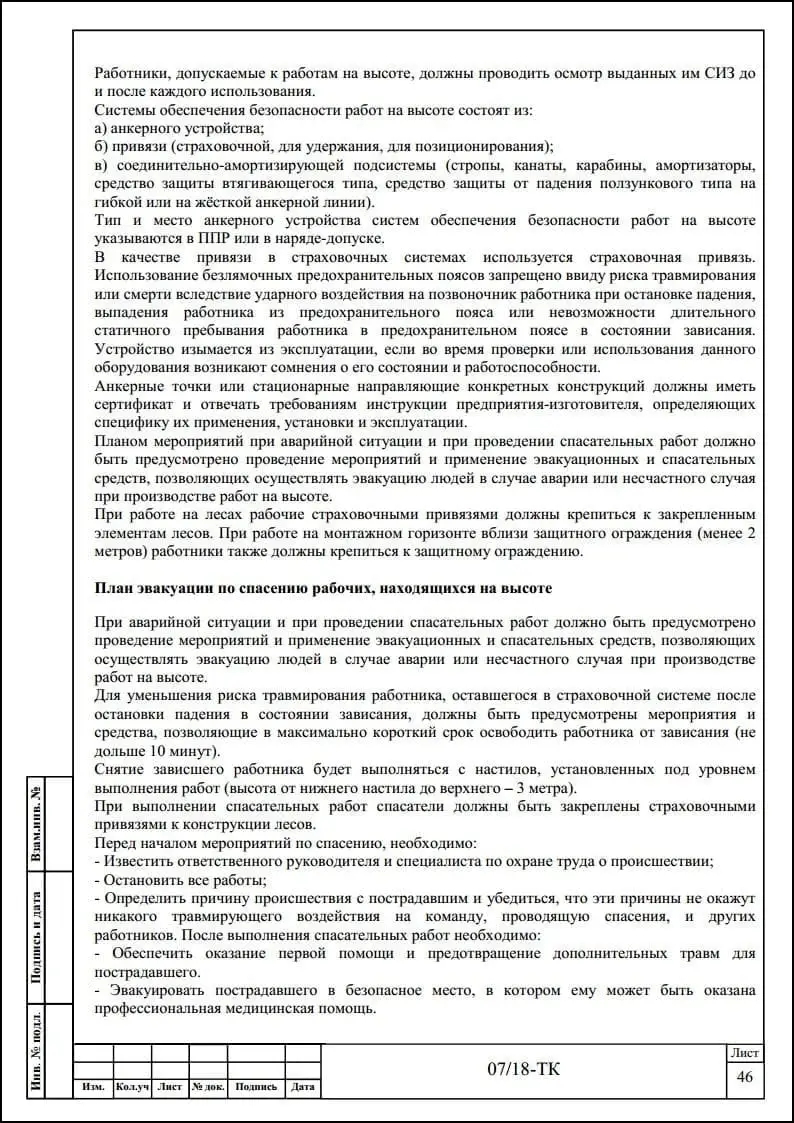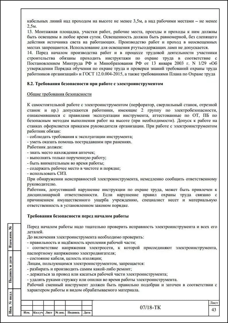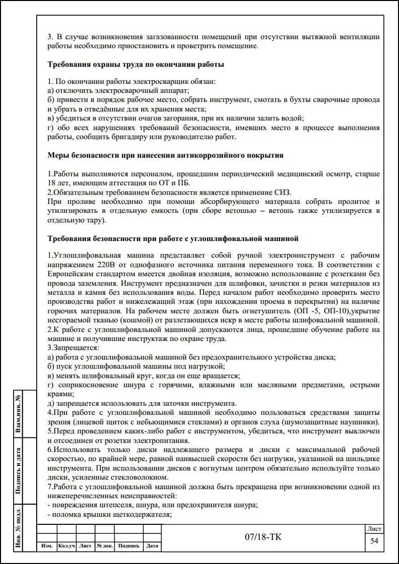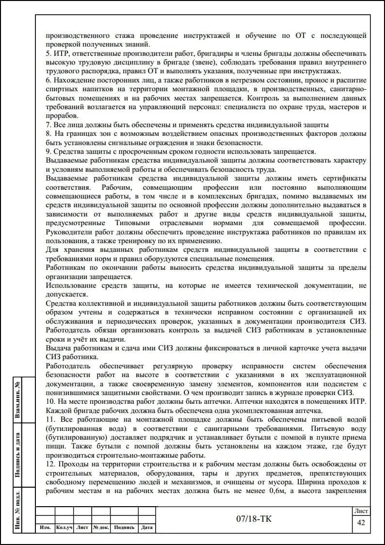 Порядок разработки технологических карт безопасного производства работ